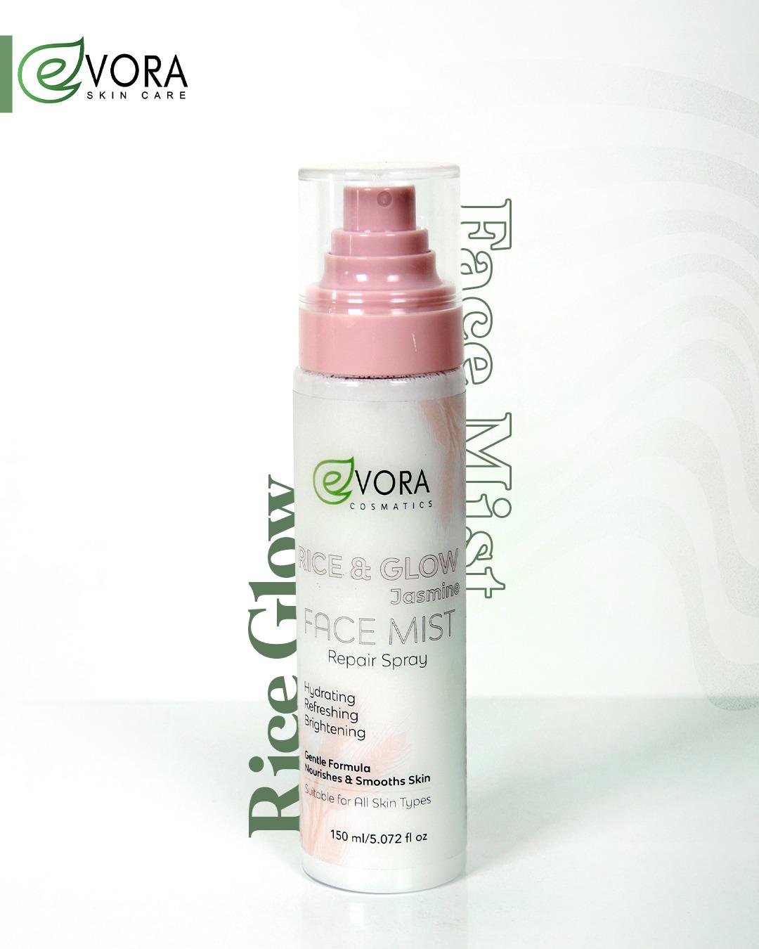 Evora Rice Glow Face Mist — a lightweight mist infused with rice extract that deeply hydrates, refreshes, and restores your skin’s healthy, luminous glow from the first spritz 💦